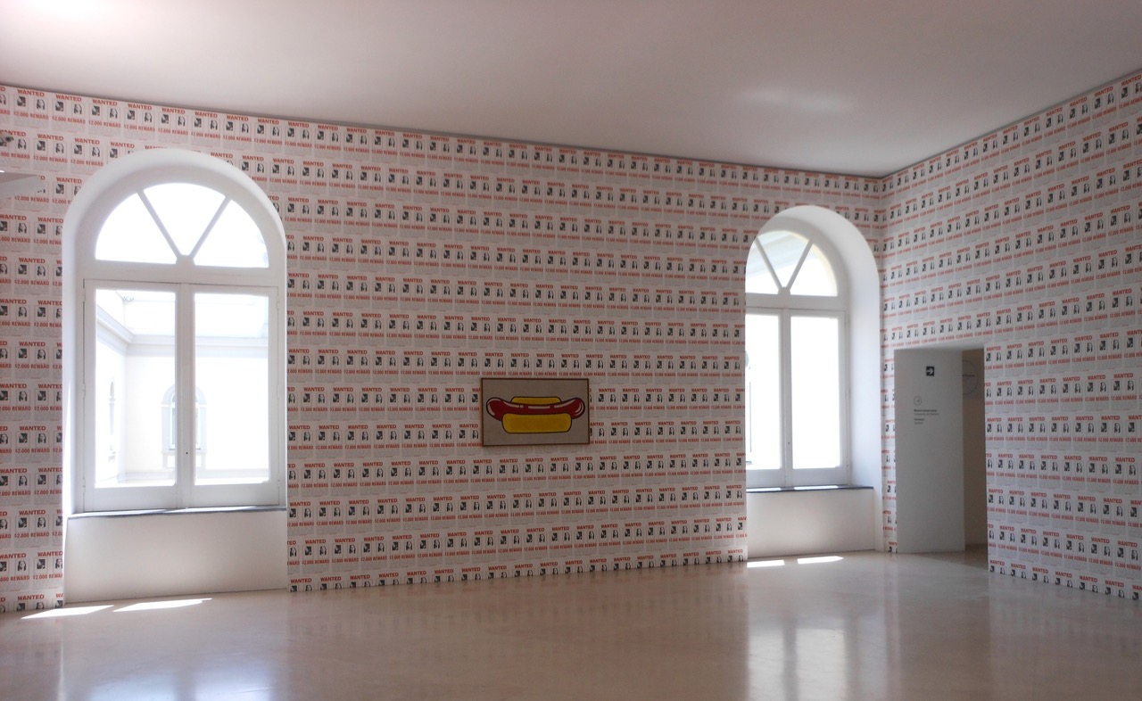 2. Sturtevant, Wanted (papier peint), 1992 ; photo : Teresa Lucia Cicciarella. Vue de l’exposition « Sturtevant Sturtevant », Naples, MADRE, 2015. Crédits pour l’œuvre de Sturtevant : Succession Sturtevant, Galerie Thaddaeus Ropac.