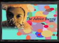 Valérie LamontagneThe Advice Bunny 1999 If you missed The Advice Bunny's passage in your neighbourhood, don't worry, he's found refuge on the Web where he continues proffering wise advice. Anywhere and anytime, therefore, any troubled soul may seek the character's kindly ideas for the laughable sum of 25 cents, which she'll eagerly let go for the most needy… With a good dose of humour, Valérie Lamontagne creates a universe suggestive of public consultations, like the advice columns found in newspapers, the open radio talk shows or the 1-900 services. She is interested in the self-disclosure, soul-searching and exchange that is occasioned by the Web. The project builds on the medium's possibilities of expression (personal pages, e-mail, discussion groups), which allow anyone to speak on any subject as he or she sees fit, or become a figure of authority, at least for a moment, for someone. Indeed, the Web elicits the kind of activities that end up giving the impression of an immense confessional, individuals having a greater sense of liberty or emotional dispensation in front of a computer screen than face to face with another. Through the creation of character, The Advice Bunny also alludes to the shifting personal identity inside this domain, and to the desire to become other, to test the avenues offered by anonymity.