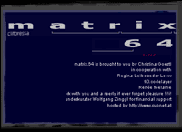 Matrix.64 1999 In Matrix.64 Christina Goestl presents the "64 arts" of the Kama Sutra, in German and in English, and in the form of a tableau. This work plays with notions of accessibility to information on the Internet, the availability of even foreign (sanskrit) or very old (320-540 A.D) content, and the recovery and transformation of written material on this new medium. The artist proposes, then, to give visitors the benefit of the teachings of the Kama Sutra by integrating them into a new structure and by allowing them to add their own content to the originals. One should know that the "64 arts" are the result of many collaborators and that they were intended to be "improved" with time. Christina Goestl's project therefore respects the spirit of these works, in a sense, while also putting them in a form that contributes to an understanding of their meaning, thanks to the resources of the new medium. On perusing these texts, the visitor realizes that, much more than a technique of sexuality, it is a guide to pleasure that integrates many facets of life as well as advice on the sexuality proper. The project's "instruction manual," produced with Shockwave, concerns not the accomplishment of the actions described, but indeed one's orientation within this new structure of writing. The database is activated by each visitor as he or she sees fit and allows him or her to create groupings of these "arts," to weave links between texts dealing with sexuality as such and others dealing with other aspects of life. The texts are accessed through a "close-up," an enlargement that, again, does not directly give us erotic content, but allows us to select and focus on one or another of the arts by the same process. Complicit with the visitor, a play of diverted expectations is produced.