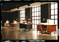 Twelve dot matrix printers, metaphors for modern working environments, "offices," are played by an orchestra composed of a dozen networked desktop computers. As [The User] explain: "The orchestra is 'conducted' by a network server, which reads from a composed 'score.' Each of the printers plays from a different 'part' comprised of rhythms and pitches made up of letters of the alphabet, punctuation marks and other characters. [The User] uses ASCII text files to compose, orchestrate, and synchronize sonorous and densely textured, rhythmically-driven music." Thus, ASCII texts are used as commands for the various printer movements and as a tool for composing and synchronizing a very textured music that appears to resonate from the bowls of the machine.