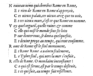 Du Bellay, Joachim, Le premier livre des antiquitez de Rome. Num. BNF de l'éd. de [Paris] : [impr. de F. Morel], [1558]. in-4