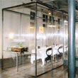 Enfin, le laboratoire est relié par un passage à une salle rectangulaire sous plastique transparent dont l'accès reste fermé aux visiteurs avant la dernière soirée - moment culminant de l'installation : avec ses tables et les couverts dressés, cet espace devient la salle à manger.