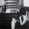 Now take The Egg That Wouldn't Hatch 3 as a counterpoint to the inhibited spaces of Coup de poker and Les vases communicants. The physical setting of Egg is more or less interchangeable with theirs: an urban home. But here the camera moves hesitantly through the rooms as a couple argue. We see the space itself as dynamic, as possessing an identity, performing a role. As we become aware of the geometrical dimensions of the rooms, we become equally aware of their emotional dimensions: where one woman stands to expand, angrily, and where the other sits to retreat in shame and confusion. When the interloper arrives, the two main characters move to the next room to have a private discussion.