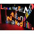 The lounge, with its genuinely boozy aroma, is home to a few pieces, some of which linger from prior shows. By far the most interesting is Jeremy Bert's large reclaimed-neon cut-up, Ransom Note (not remotely interactive, unless one counts its few extinguished lights, probably bumped into by revelers), which overshadows and illuminates the bar. It reads: "leave nineteen million dollars in unmarked bills."