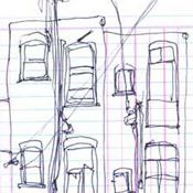 Living (and sleeping) there has wrought her finest work, Entre Ville, 4 and its apparent postscript, Les huit quartiers du sommeil. Entre Ville is devoted exclusively to her apartment and the neighborhood it occupies; the "map," in this case, is a sketch of her building, or one like it, and its legend a poem. Where the free verse falters, videos shore up the whole: the windows and doors of her sketch link to shorts filmed around her back alley and apartment. They are often positioned in intrinsic opposition to one another: one neighbor's trumpet competes with another's private squabbles; floral blankets force comparison to flowers; graffiti abuts civic numerals. It is a minutely local piece, patient with the modest hardships of urban life in Montreal and tender toward Mile End.